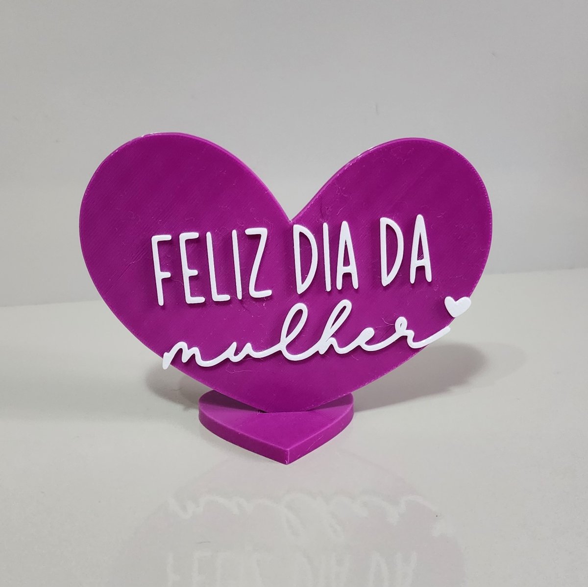 Coração decorativo na cor rosa com a mensagem “Feliz Dia da Mulher”, perfeito para enfeitar estantes, mesas ou prateleiras. Um item delicado e cheio de significado, ideal para presentear e homenagear em datas especiais, trazendo charme e um toque afetivo ao ambiente.