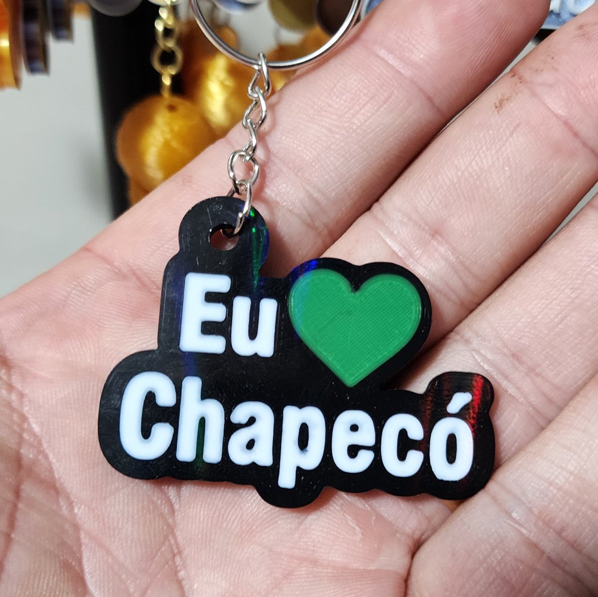 Chaveiro “Eu Amo Chapecó”, perfeito para demonstrar seu carinho pela cidade ou presentear alguém especial. Ideal para uso no dia a dia ou para revenda, com um toque único e cheio de estilo!
