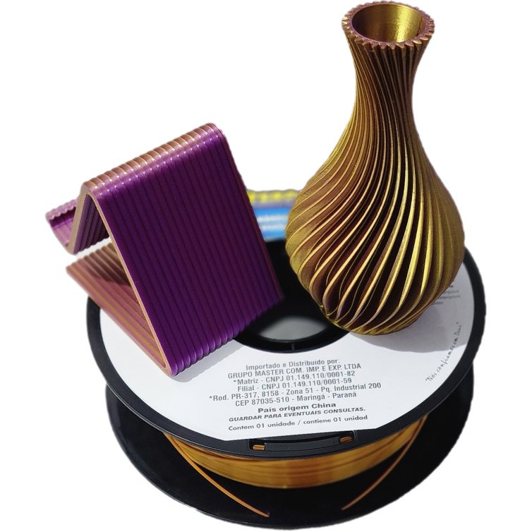 As versões Duo e Tricolor proporcionam um efeito visual único, com transições de cores suaves ao longo da peça, dispensando trocas de filamento e agregando valor estético ao seu projeto final.