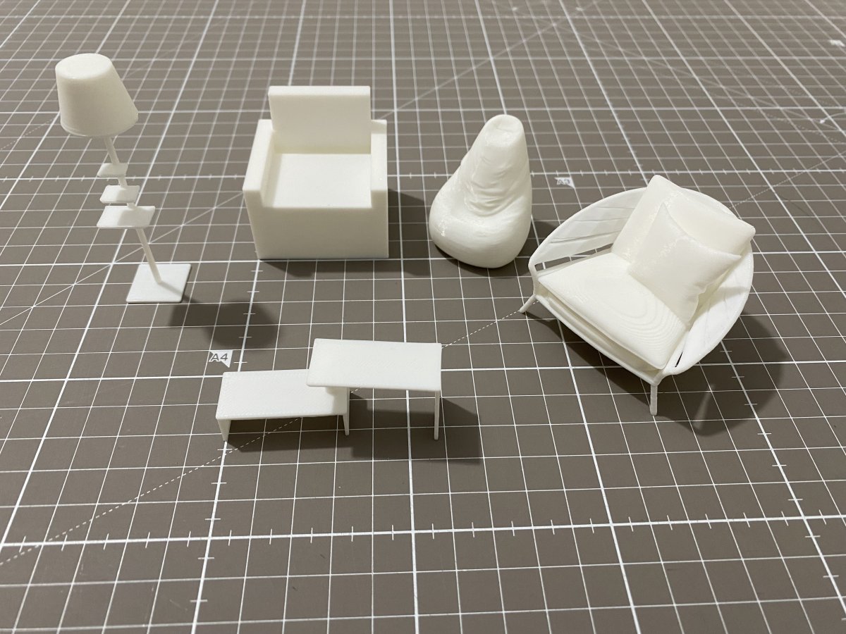 Eleve o nível de apresentação dos seus projetos de interiores, maquetes físicas e dioramas com o nosso Kit de Móveis Modelo 01. Produzido na escala 1:20, este conjunto é ideal para maquetes de alto detalhamento, permitindo uma visualização realista e imersiva da volumetria e ocupação dos espaços.