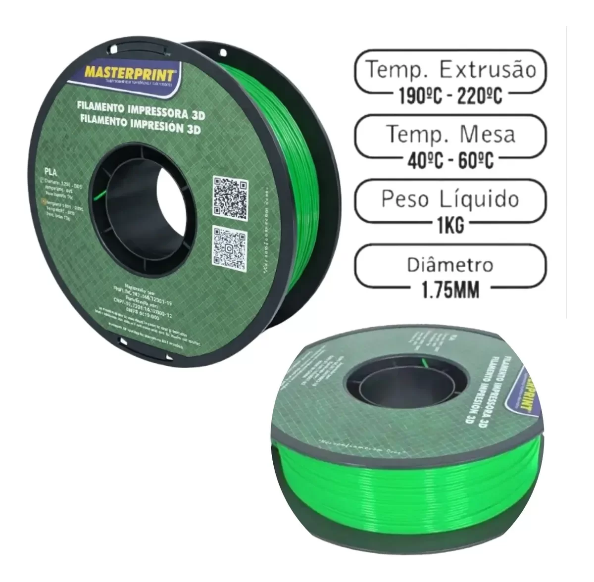 FILAMENTO 3D MASTERPRINT - PLA VERDE - 1KG (1.75MM) DER 4
