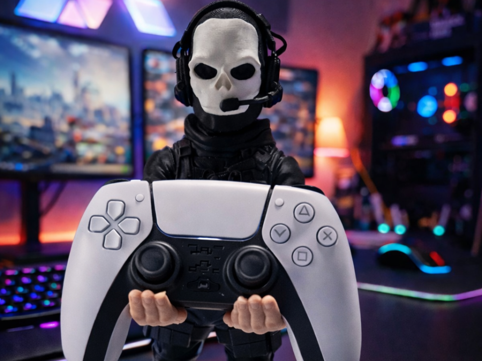 Suporte premium com design exclusivo em formato de caveira, ideal para deixar seu setup mais organizado e estiloso. Produzido com alta qualidade pela Chapecó 3D, garante encaixe perfeito e ótimo acabamento.